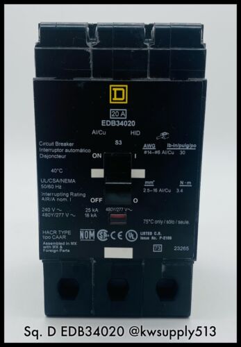 Square D EDB S3 20A Molded Case Circuit Breaker