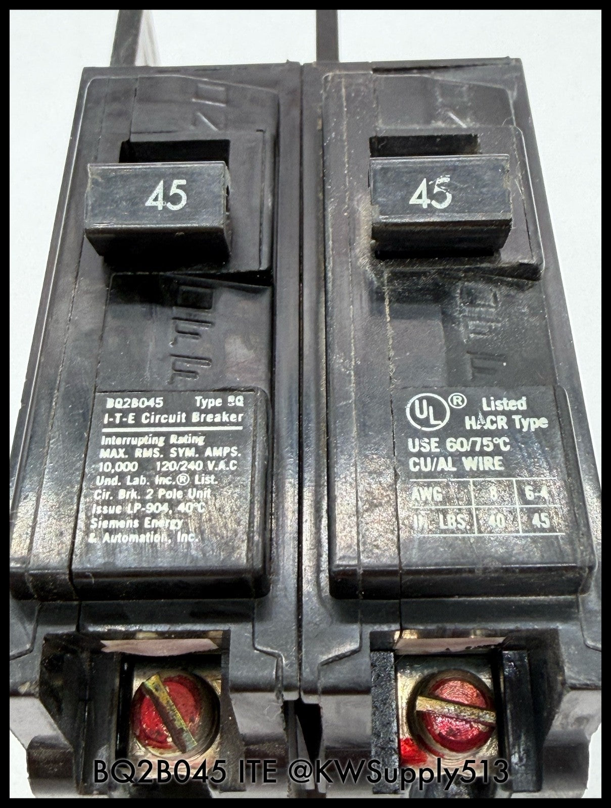 You are Bidding on the Following Item a ITE BQ2B045 45A 120/240VAC Circuit Breaker. This is a Used item.